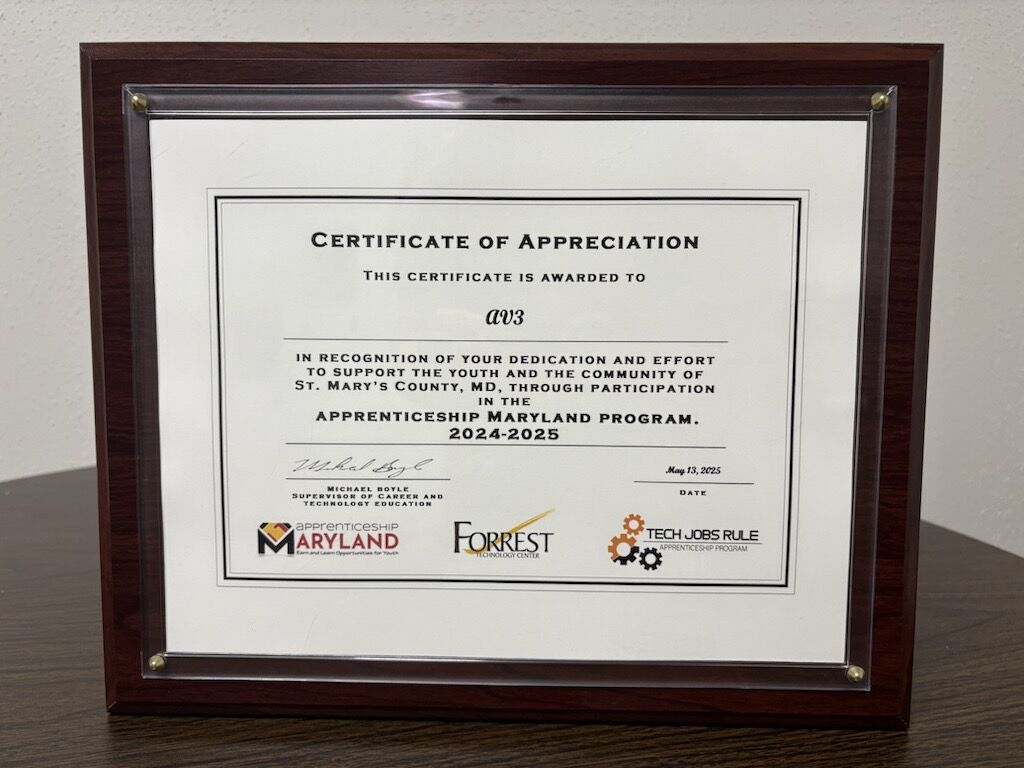 AV3 Inc. demonstrates a strong commitment to education in St. Mary’s County Public Schools through a multifaceted approach. This support includes direct donations of equipment like Smartboards, to enhance classroom learning. Furthermore, AV3 actively participates in Career and Industry Days, providing students with valuable insights into potential career paths. Critically, the company solidifies this commitment by offering an internship program, giving St. Mary’s County students hands-on, real-world experience to help build the local future workforce.