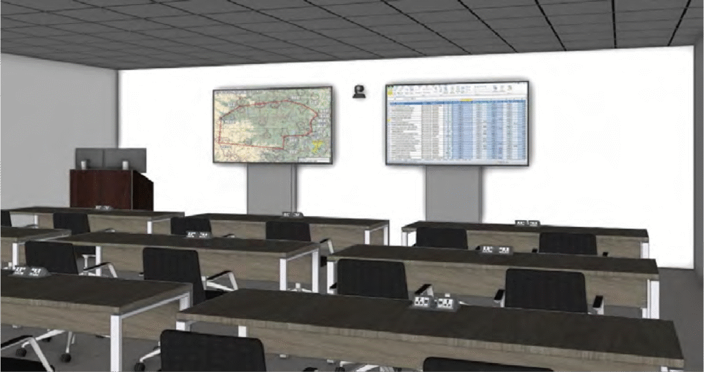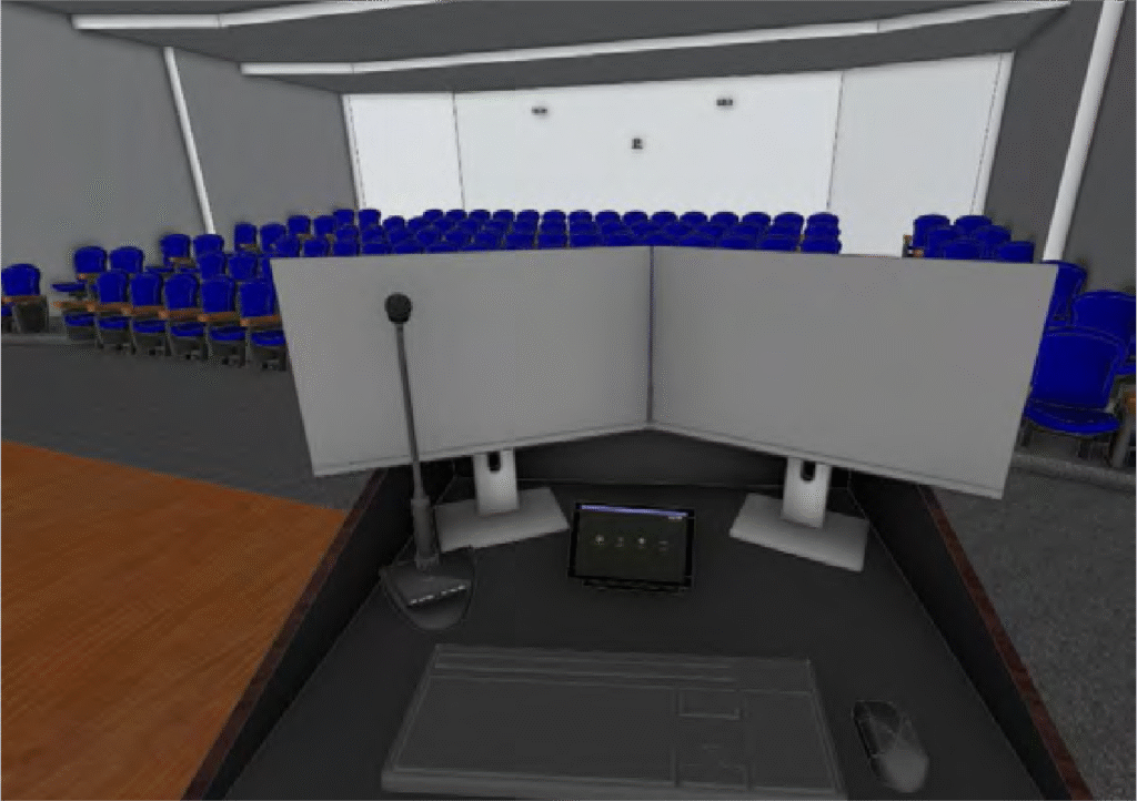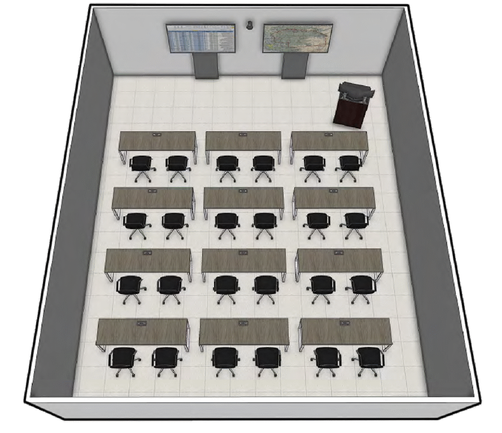 Supports Instructor led training and education in an auditorium environment for up to 75-120 students.